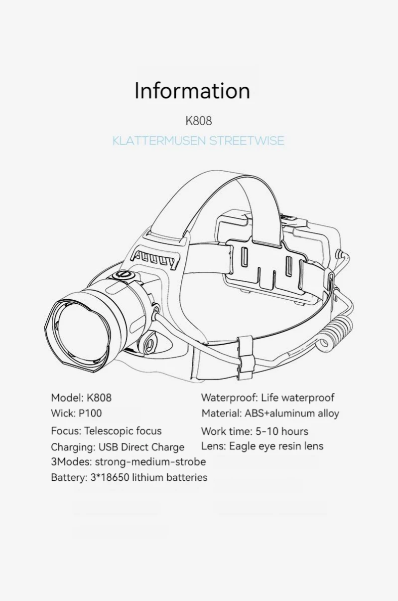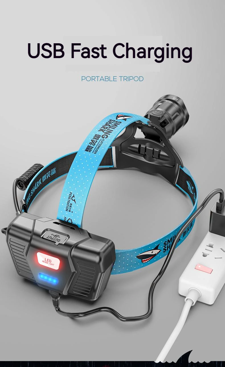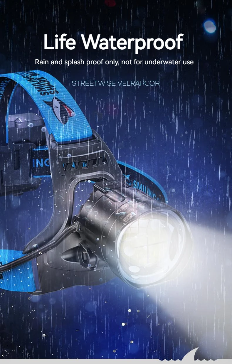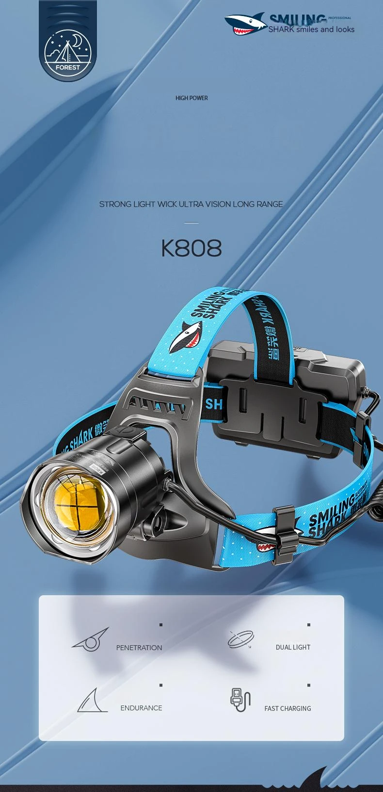 Smilling Shark K808 Super Bright Headlight LED P100 8000LM Headlamp Rechargeable Zoomable Head Flashlight for Camping Hiking