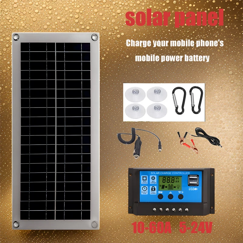 Solar Panel System 12V Solar Battery 60A Controller Solar Panel Kit For Family Mobile Caravan Camping Outdoor Battery