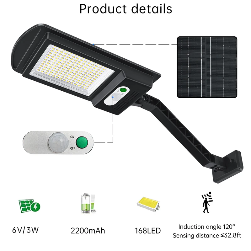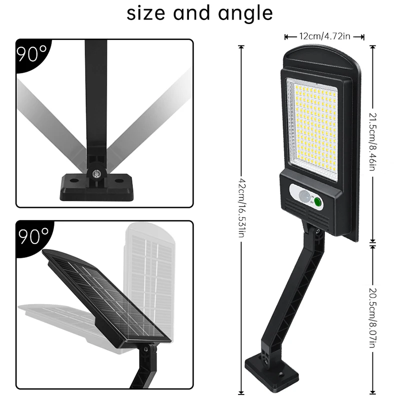 【Super Brightness】–The solar street light has 168 LED beads,day white light,90°ultra-wide angle lighting.