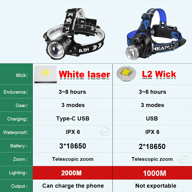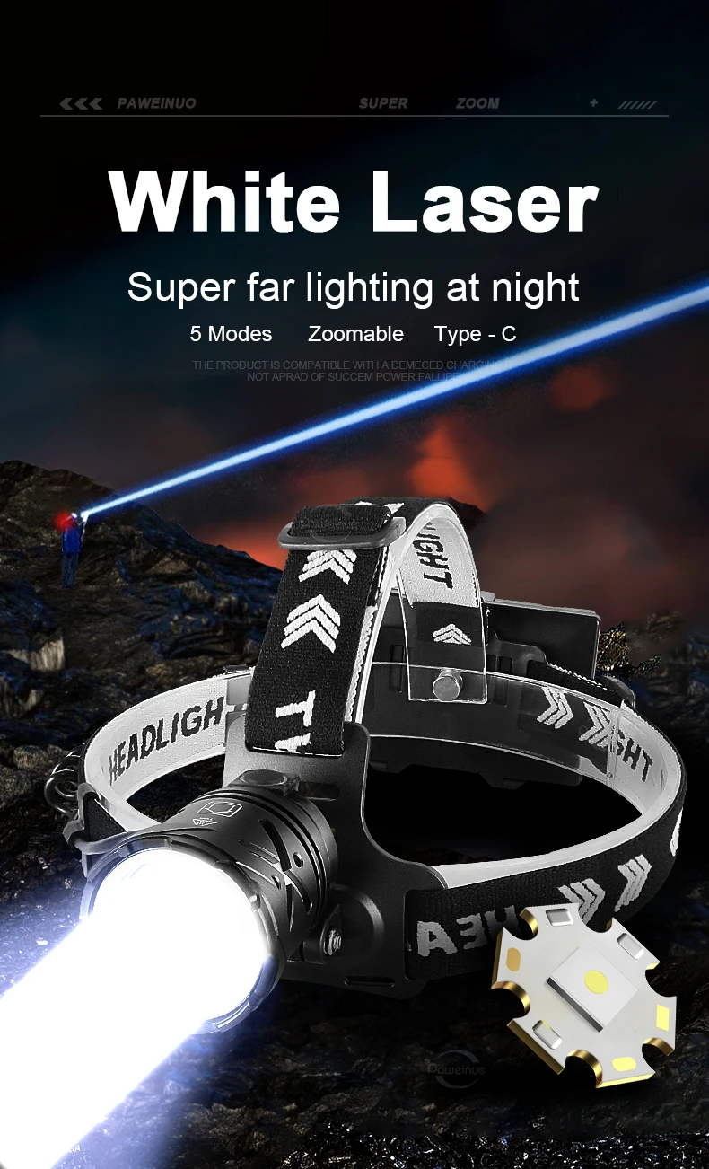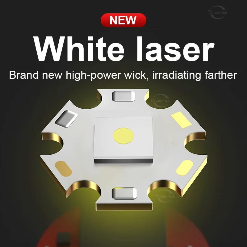 The outstanding feature of the white laser wick is that it can focus the light at a long distance. When you adjust telescopic zoom, you can focus and direct light farther away. The white laser wick has a super powerful light source. Be careful not to shine it directly into your eyes. This white laser has a range of up to 2000m and an irradiation area of 500-1000 square meters. It is bright and profound.