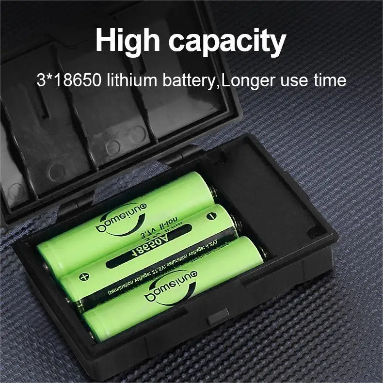 The large battery storage compartment can accommodate 3×18650≈8900mAh battery capacity and has a battery life of up to 8 hours.