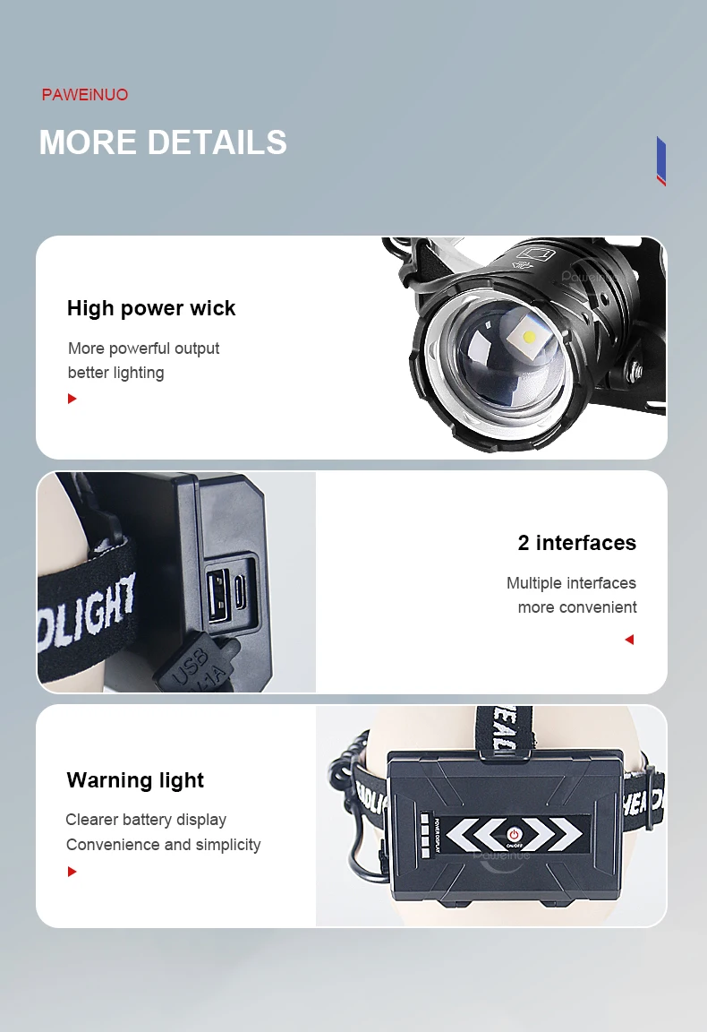 Super Powerful 10000LM LED Headlamp Fishing USB Rechargeable Head Torch 3 Modes Head Lantern 18650 Outdoor Headlight Camping