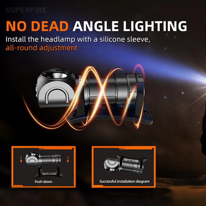 SUPERFIRE TH04 High Power LED Headlight Rechargeable USB Magnetic Tail Work Camp Light Waterproof 18650 Work Light Head Lamp