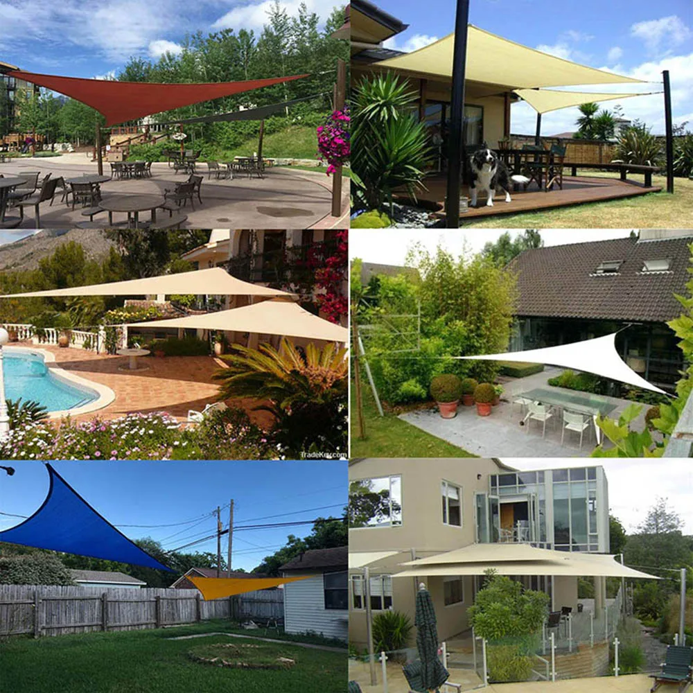 The waterproof shade sail with PU coating, anti-mildew/light rain, but can not block the rainstorm Waterproof sail need install at a 20-40 degree angle with maximum tension to allow runoff and the side with seams should be facing the ground to avoid leaking Up to 90% UV protection , strongly protects you and your loving family from harmful sun rays for long time Free giving 3*2m long durable ropes, strong sewing processing on each side, stainless steel D ring on each edge, strongly guarantee fastness of installation Size:3x3x3m/9.8×9.8 x9.8ft ,4 x4x4m/13x13x13ft,6x6x6m/19x19x19ft Material:Waterproof polyester fabric Application:Suitable for families, parks, outdoor picnics, camping, swimming pools, playgrounds, etc. Package Included: 1 * Sun Shelter 3 * 2m rope