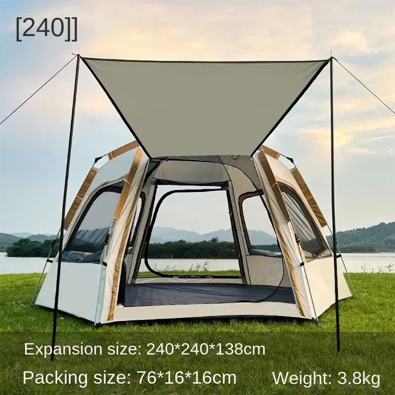 Tent Outdoor Portable Hexagonal Folding Fully Automatic Quick Opening One Room One Hall Ventilation Park Camping Tent Skycover