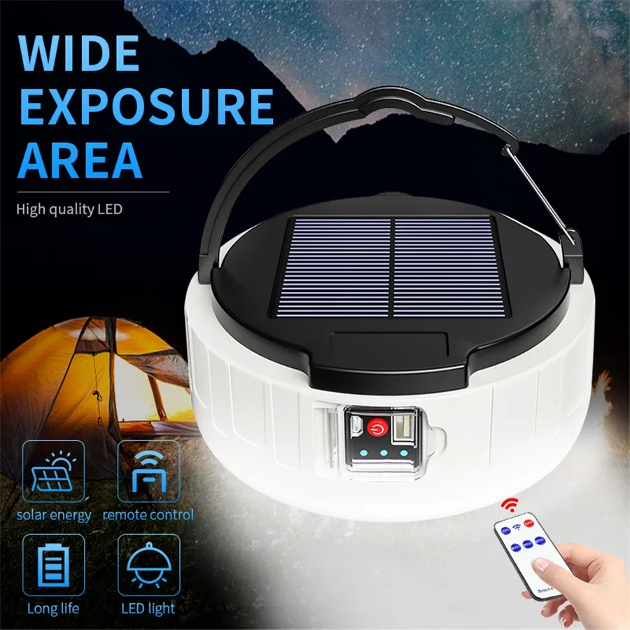 3. Multiple lighting modes: This camping lamp has full bright, semi bright and SOS modes(Only Remote Control Solar Rechargeable), which can last about 4-48 hours respectively. A row of blue indicator lights show the battery level so that you can charge it in time.