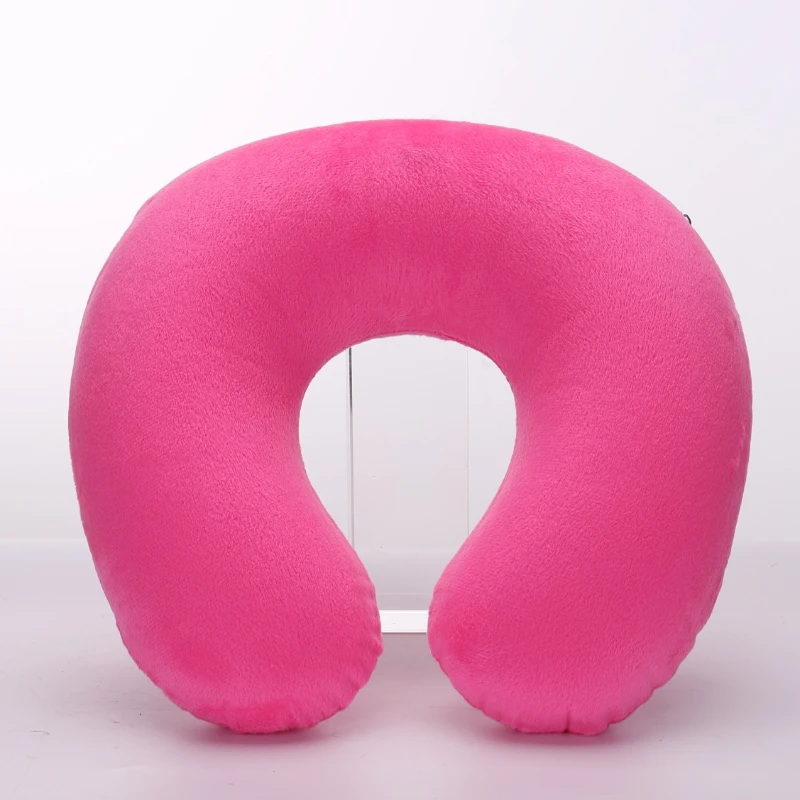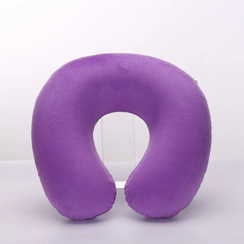 Travel Office Headrest U-shaped Inflatable Short Plush Cover + PVC Inflatable Pillow Pillow Support Cushion Neck Pillow 9 Colors