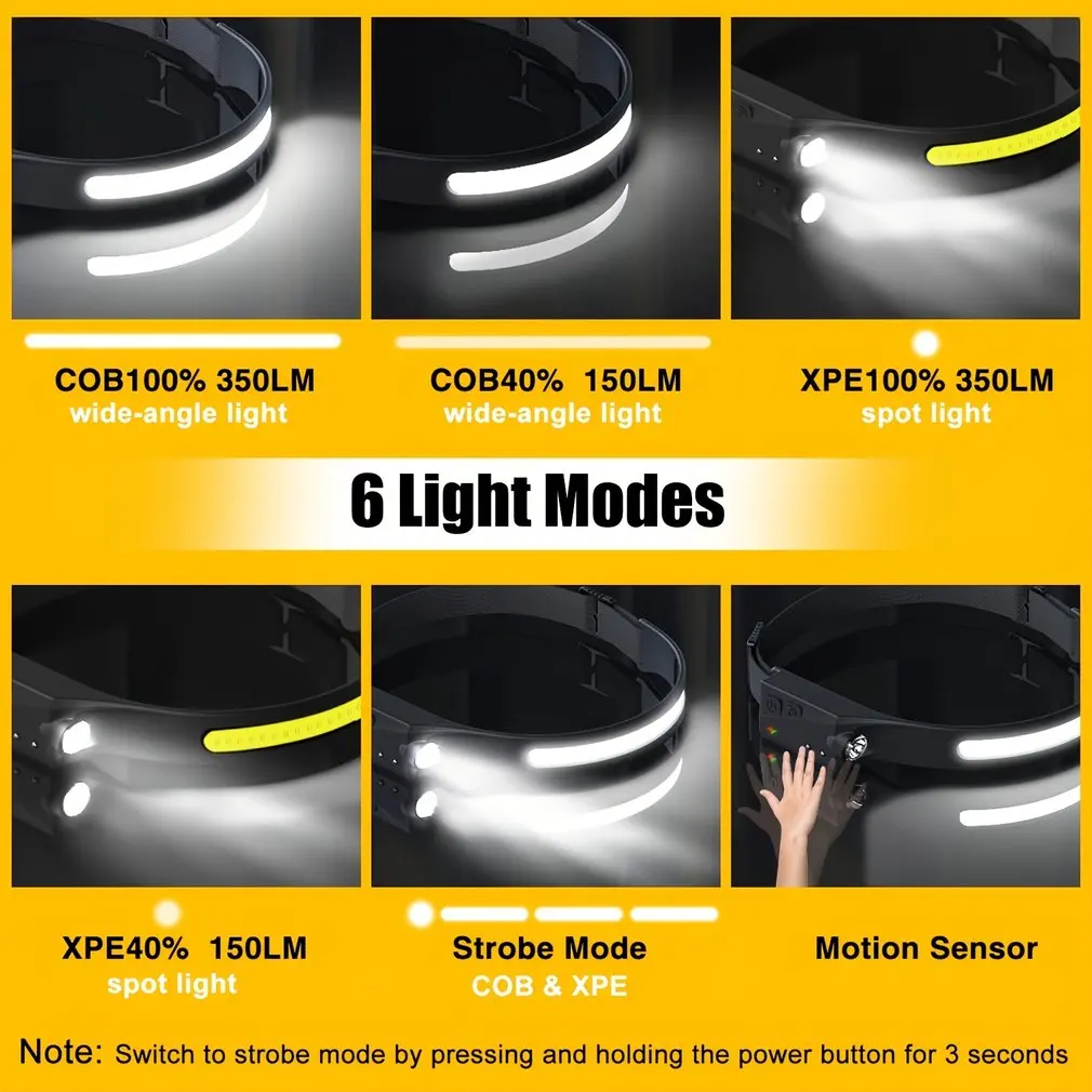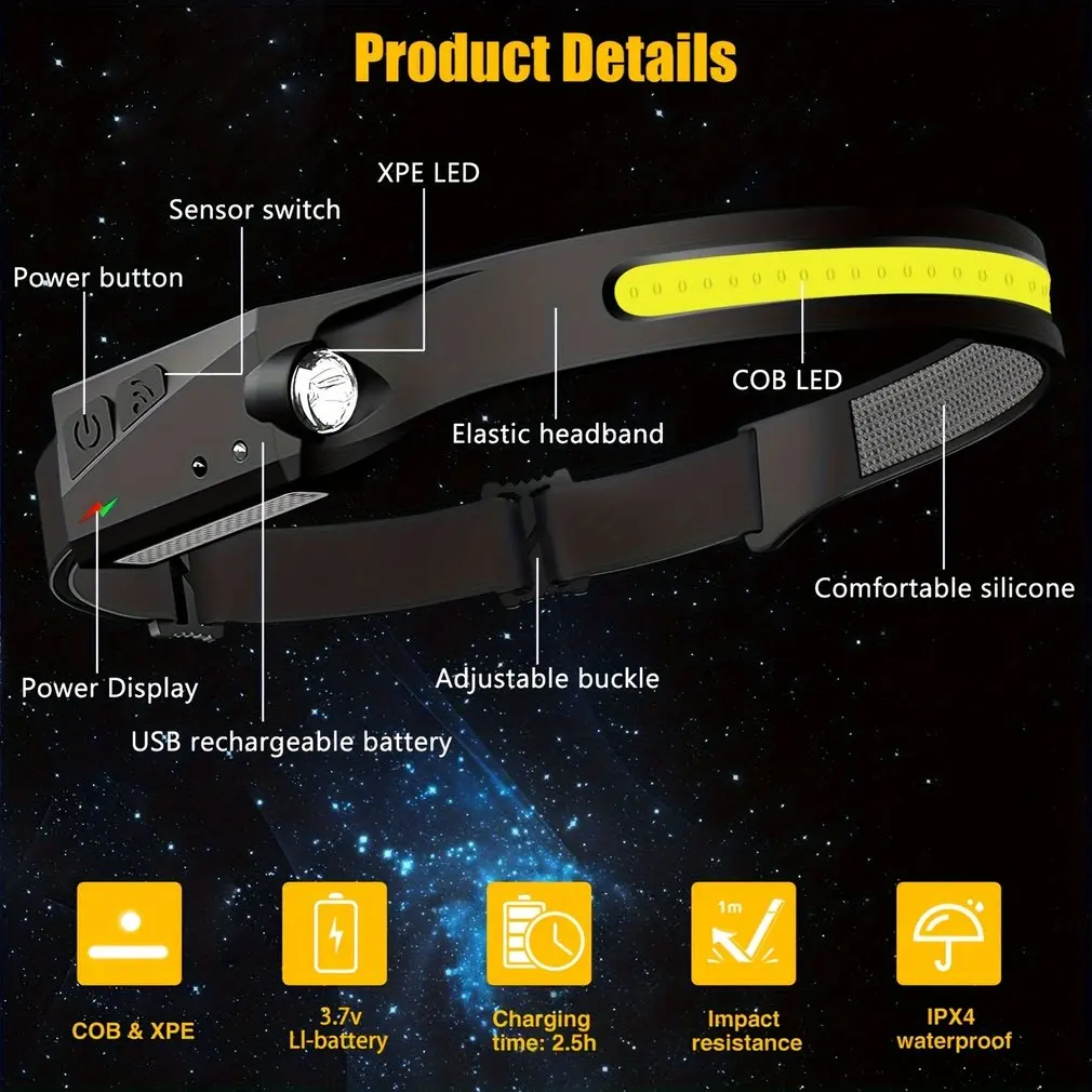 USB Rechargeable LED Sensor Headlamp XPE+COB Headlight Led Head Torch Camping Search Light Head Flashlight for Fishing Lantern