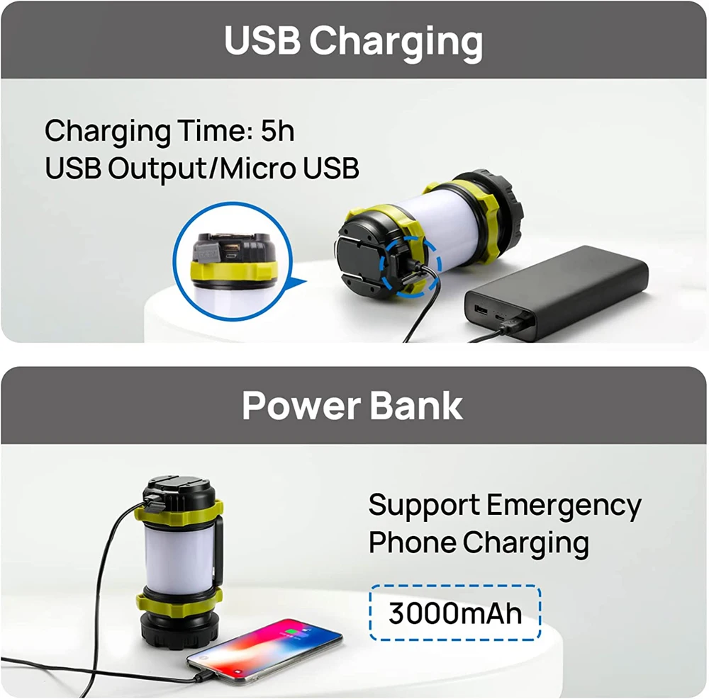 【Sufficient Brightness & Long Lasting LED camping light with more than 60 ultra-bright LEDs, can produce up to 520LM high brightness, emit 6000K daylight white with a beam distance over 1148ft/350m. When fully charged, it can last up to 8 hours of lighting.