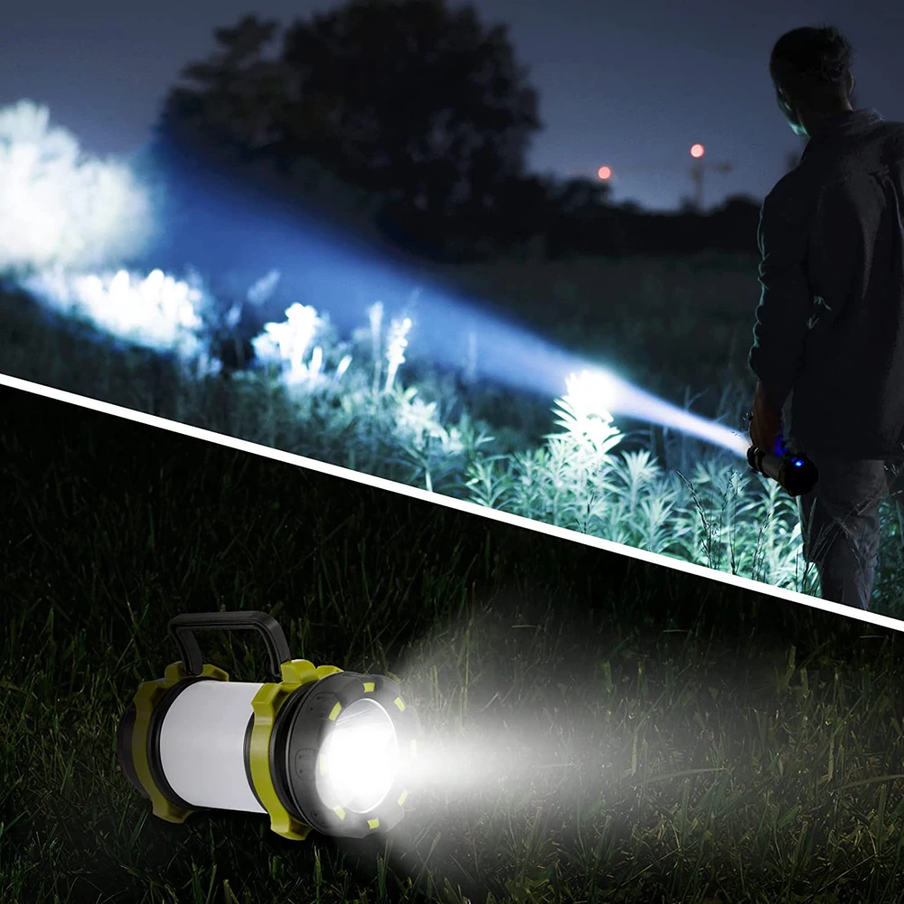 【6 Light Modes & Dimmable】Coming with 6 different modes: High/low modes flashlight & lantern; Red warning/Strobe light (SOS mode). The 360° ultra-bright lantern flashlight can meet your lighting needs in any emergency situation. Perfect for camping, hiking, fishing, climbing, hunting, exploring, emergency, etc.
