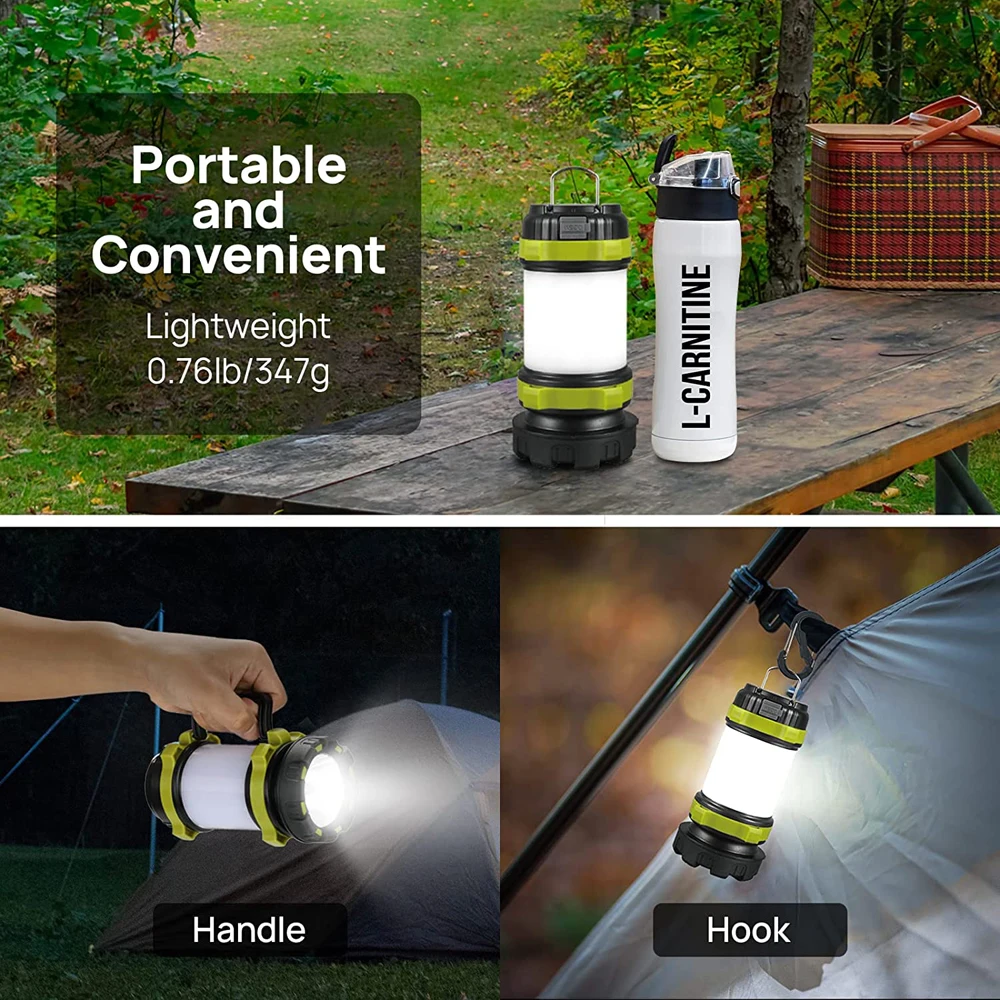 【Waterproof & Drop-Resistant】IPX4 waterproof makes the camping lantern withstand splashing rainwater in all directions. The military-grade materials make the lighting structure more compact and durable, it passed through 1000+ times drop tests and still keeps unscathed.