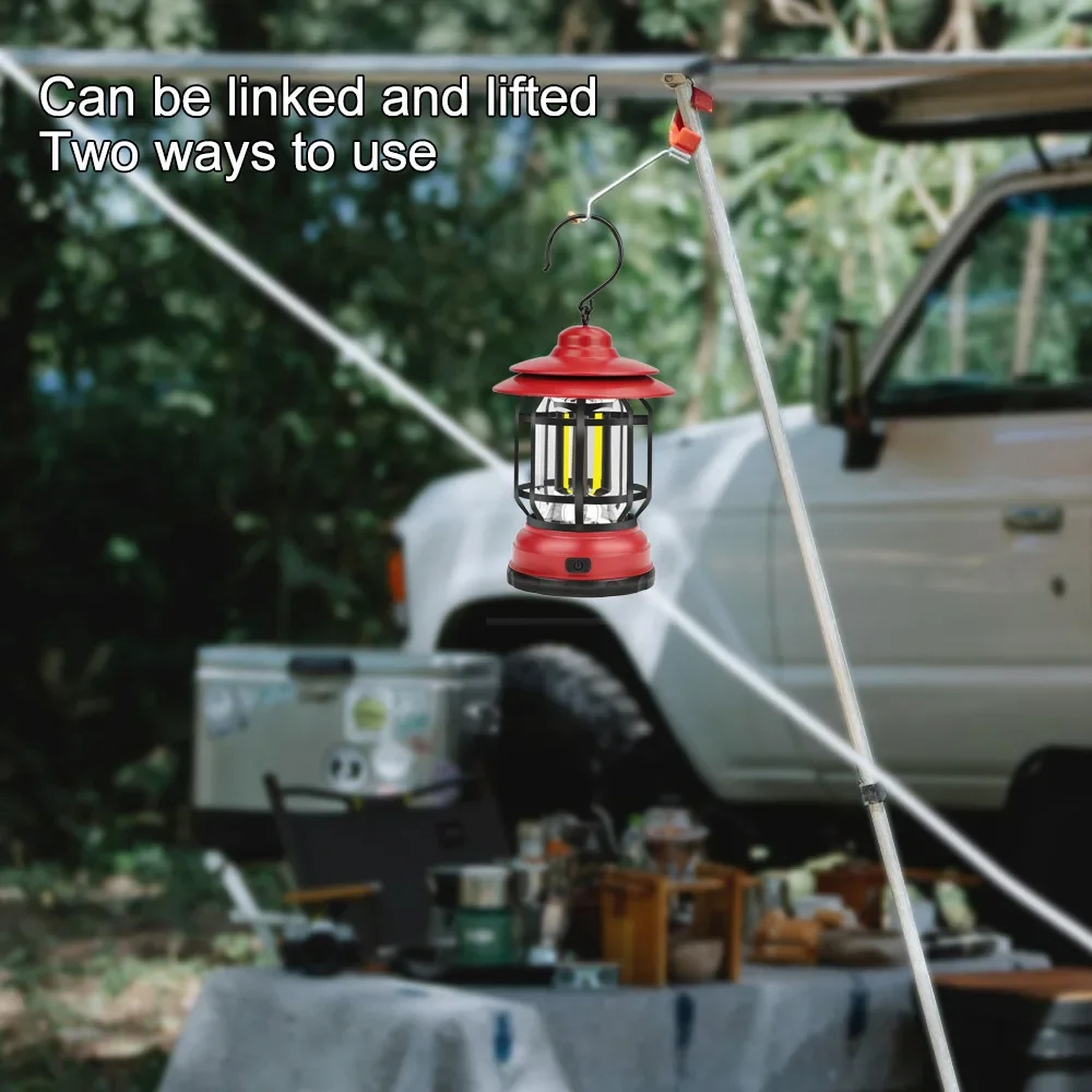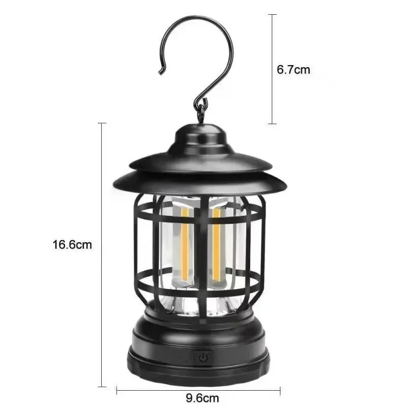 Vintage Camping Lantern 3*AA Battery Powered 300 Lumen Tent Light 360° Outdoor Warm Lighting 2 Modes Portable Emergency Lamp