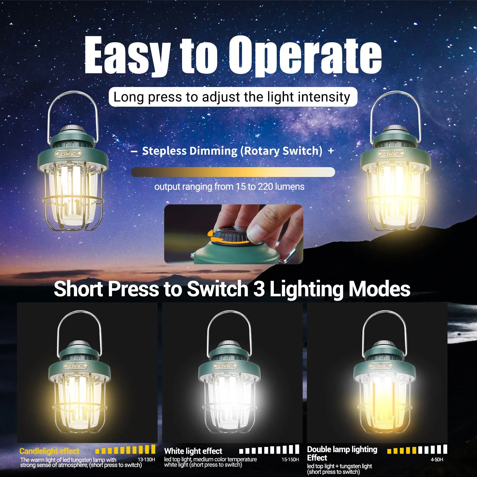 Vintage LED Camping Light Built in Battery Portable Waterproof Emergency Lantern High Power Outages Indoor Outdoor Flashlight