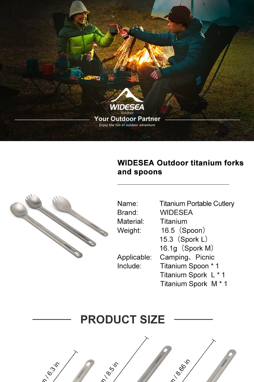 1. Name: Widesea Camping Titanium Cutlery