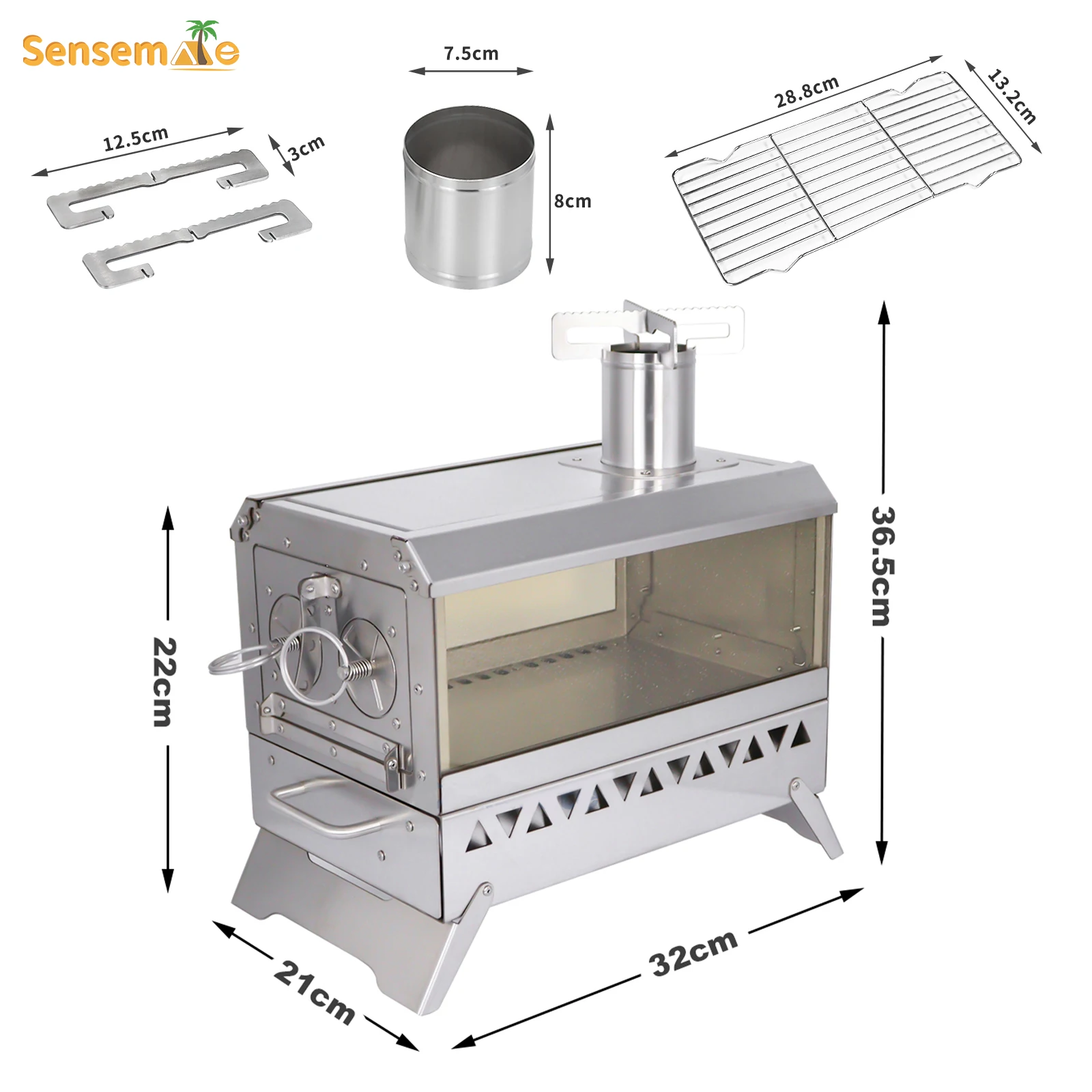 Winnerwell-Smokeless Portable Camping Fire Pit with Window Oven Bag , Stainless Steel, Tent Heater Ice-fishing Cooking BBQ 3.5KG