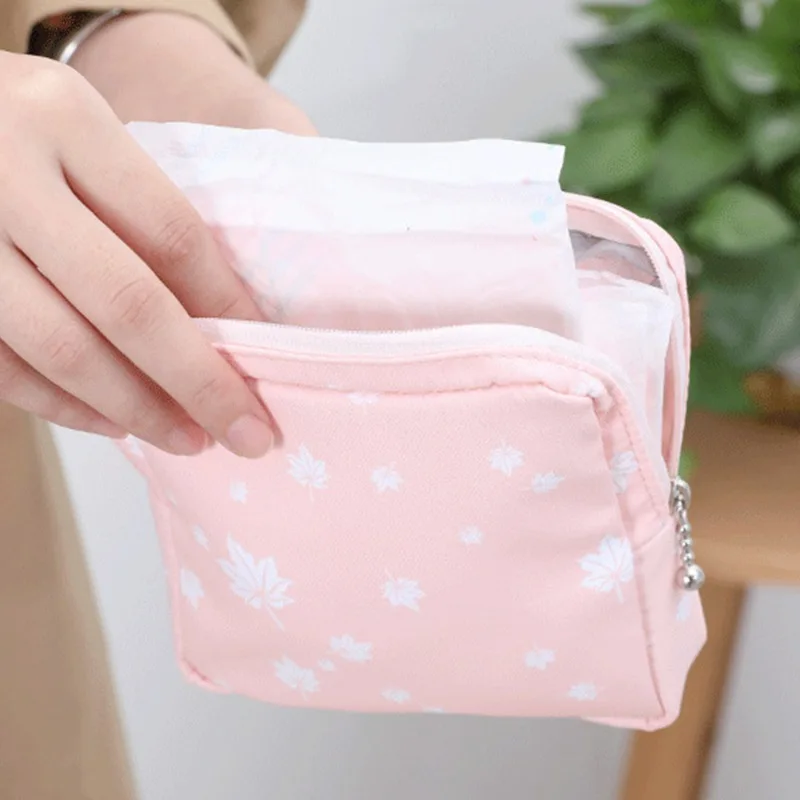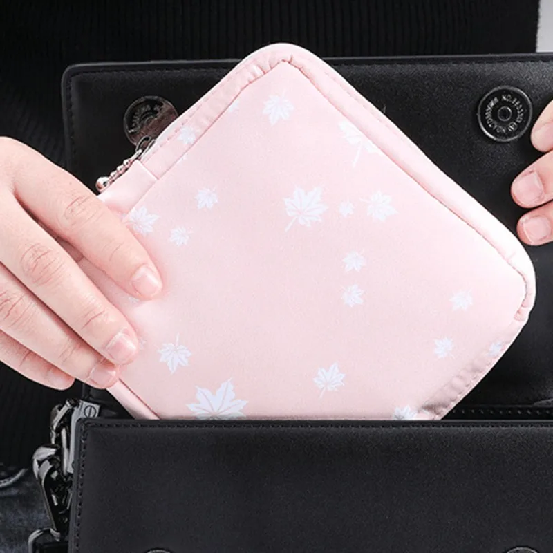 Women Portable Sanitary Napkin Tampon Storage Bag Cotton Travel Makeup Storage Bag Literary Zipper Coin Purse Sundries Storage